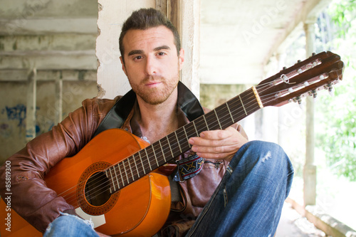 acoustic, adult, electric, fun, guitar, guitarist, guy, photogenic, leisure, life, male, music, musician, outside, rock, sound, street, urban