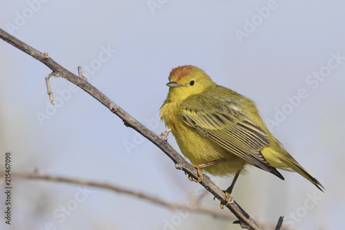 Mangrove warbler (Setophaga petechia aureola) on branch, Urbina Bay, Isabela, Galapagos Islands, Ecuador