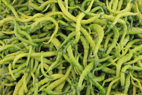 Many green pepper bitter on the table