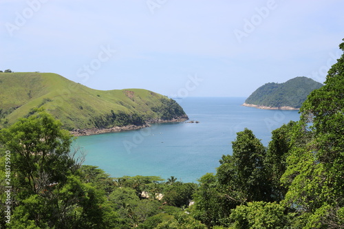 sea, beach, coast, island, dunk, landscape, ocean, blue, heaven, bay, nature, travel, outlook, summer, vacation, tropical, mountain, green, sand, scenic, mediterranean, rock, seascape