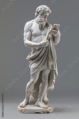 poseidon, statue, smartphone, marble, mythology, modern, technology, greek, god, sculpture, innovation, creativity, art, neoclassic, cultural, fusion, traditional, digital, connectivity, wisdom, communication, juxtaposition, icon, culture, tech, historical, contemporary, antique, powerful, majestic, mythical, beauty, interaction, visual, reading, message, mobile, device, classical, timeless, renaissance, adaptation, learning