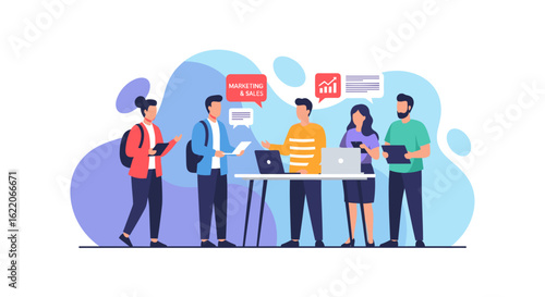 marketing, sale, team, collaboration, teamwork, business, meeting, strategy, planning, discussion, communication, presentation, technology, laptop, tablet, digital, growth, success, progress, innovation, modern, people, employee, office, workplace, vector, illustration, graphic, design, concept, idea