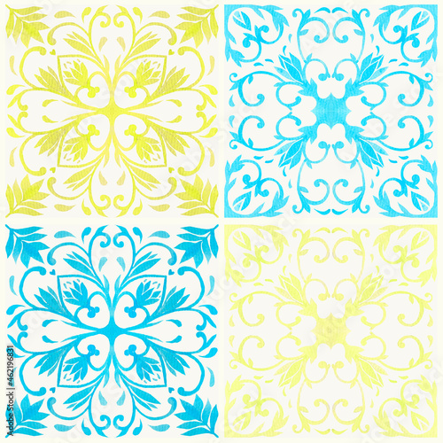 Mediterranean tiles. Watercolor illustration.