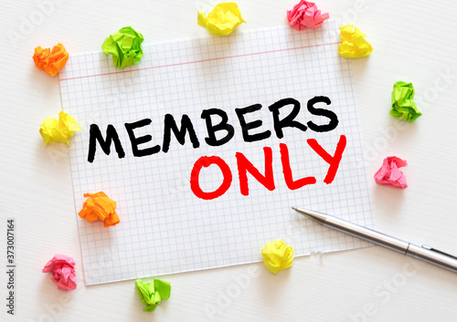 Members only, Business Concept. Chalkboard on a wooden background