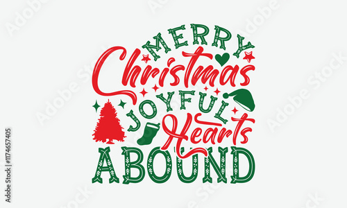 Merry Christmas Joyful Hearts Abound - Christmas Day T-Shirt Design, Handmade Calligraphy Vector Illustration, Silhouette Cameo, Cricut, Eps, Files For Cutting.