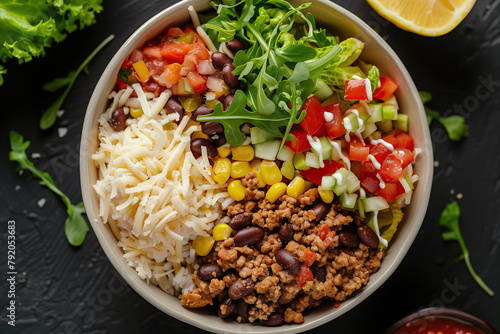 mexican, burrito, juicy, fresh, bowl, leaf, salad, chopped, pickle, corn, sweet, meat, beef, chicken, pork meat, tomatoes, bean, ingredient, popular, dish, cafes, food, street, cookery, mince, cheese, salsa, guacamole, sauce, lettuce, warm, served, pepper, customize, different, traditional, national, favor, delicious, tasty, convenient, satisfying, meal, option, enjoyed, worldwide, closeup, herb, jalapeno