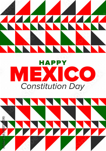 Mexico Constitution Day. National happy holiday, celebrated annual in February. Mexican pattern and colors. Patriotic elements. Festival design. Poster, card, banner and background. Vector