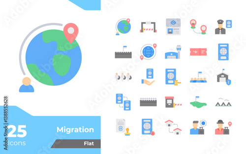 migration, transportation, travel, asylum, border crossing, border, camp, citizenship, country, customs officer, ticket, flight, immigration, migrant, nation, passport, refugee, stamp, tour tourism, visa, wall, icon, icon, vector, illustration, earth, earth, globe