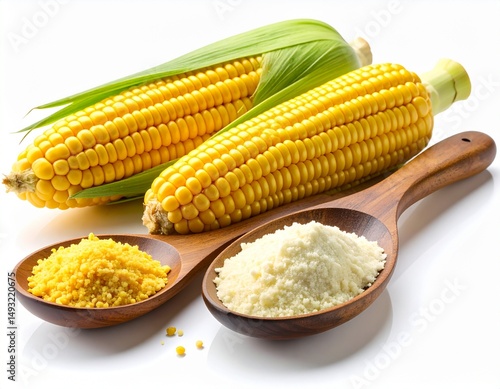 Milho Cru com Farinha Amarela e Branca em Colheres de Madeira