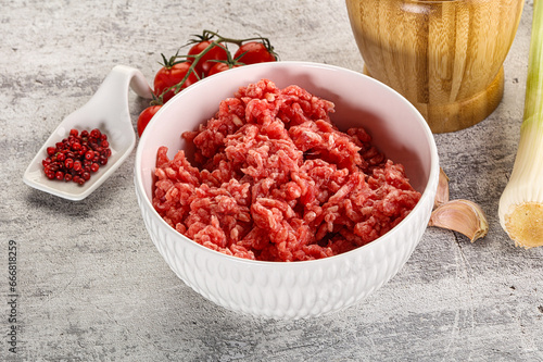 Minced beef meat in the bowl