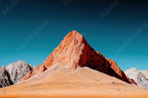 Minimalist Desert Landscape Vibrant Ochre Mountain Peak Against Cerulean Sky - Contemporary Geologic Art for Sustainable Design and Digital Wellness Platforms