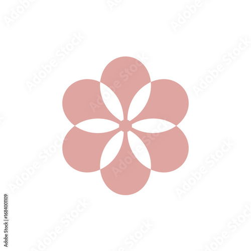 Minimalist geometric flower with six symmetrical pink petals, an abstract blossom icon
