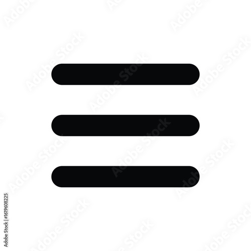 Minimalist Hamburger Menu Icon with Rounded Bars – Isolated UI Symbol for Navigation Buttons and Mobile Applications