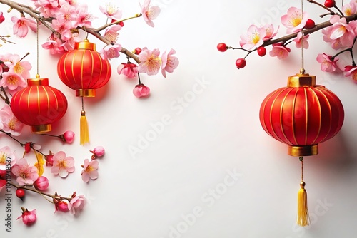 chinese new year, template, lantern, cherry blossom, celebration, calmness, greeting card, joy, fresh, auspicious, decoration, happiness, elegant, holiday spirit, tradition, artistic, balance, harmony, graphic design, typography, festive season, contemporary, minimalism, art