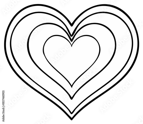 Minimalist heart icon with concentric layers simple black and white line art for coloring