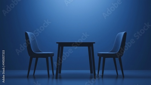 minimalist, modern, furniture, table, chair, blue, design, interior, simplicity, elegance, decor, living, space, arrangement, comfortable, geometric, shape, form, style, ambience, mood, lighting, contrast, accent, seating, contemporary, clean, line, minimalism, aesthetic