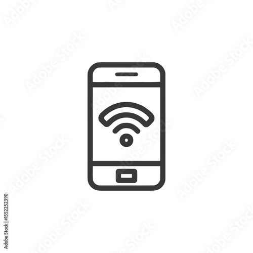 smartphone, icon, wi-fi, wireless, connection, signal, mobile, phone, technology, cyberspace, network, communication, device, digital, symbol, signs, outline, line, art, minimalist, vector, graphic, illustration, isolated, white, background, modern, smart, cellular, hotspot, datum, web, online, connectivity, portable, contraption, touch screen, application, app, interface, user, life events, design, element, pictogram, flat, style