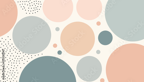 Minimalistic composition, Abstract design with colorful circles and dotted patterns in pastel shades , copy space