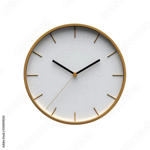Minimalistic wall clock with clean design, isolated over a white background, perfect for time or office visuals.