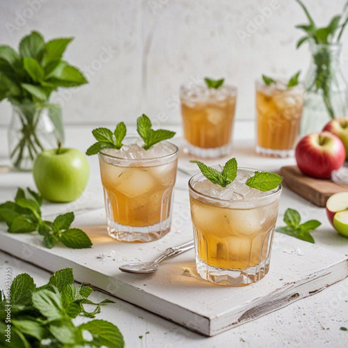 drink, tea, glasses, ice, lemon, cold, cocktail, beverage, fruit, mint, orange, iced, fresh, food, isolated, refreshment, alcohol, green, summer, iced tea, white, refreshing, slice, cup, citrous