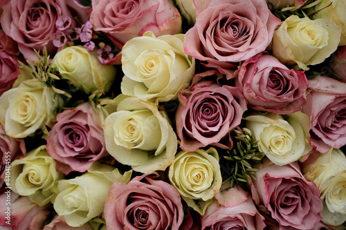 Mixed purple and white roses