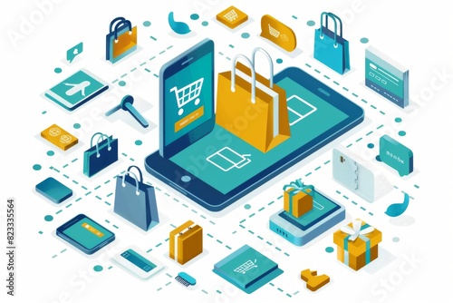 Mobile ecommerce platform with secure transactions and encrypted data protection, showcasing modern digital shopping and technology on mobile devices
