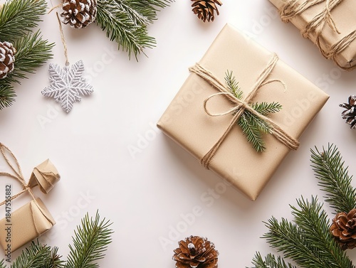 gift, christmas, celebrate, holiday, decorative, present, box, background, ribbon, winter, paper, wooden, bow, red, festive, merry, christmas, fir, surprise, seasonal, greeting, package, card, rustic, craft, design, table, december, pine, top, brown, tree, enclosed, wood, preparation, ornament, white, happy, new, tree branch, creative, space, year, vintage, twine, up high, traditional, shopping, view