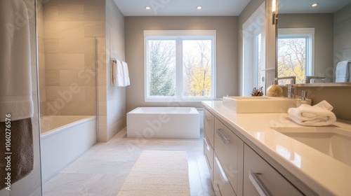 bathroom, design, modern, interior, luxury, decor, renovation, inspiration, remodel, white, minimalist, contemporary, style, fixture, feature, accessory, furniture, lighting, space, goal, idea, trend, sink, tub, vanity, faucet, shower, towel, rug, mirror, window, cabinet, tile, floor, wall, layout