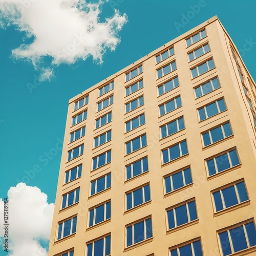 Modern Beige Building Against a Blue Sky