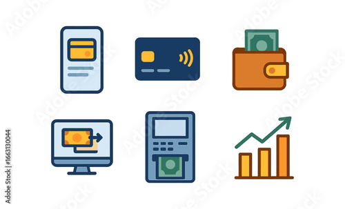 flat, financial, technology, icon, digital, payment, banking, billfold, credit, currency, transaction, atm, chart, growth, economy, finance, card, cash, online, transfer, investment, trend, money, security, business, commerce, modern, infographic, datum, interface, mobile, application, innovation, progress