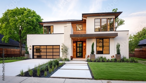 house, modern, exterior, architecture, home, contemporary, residential, landscaping, tree, grass, front, yard, entrance, garage, window, sunlight, light, stylish, design, clean, roomy, structure, concrete, pathway, plant, garden, property, urban, estate, attractive, exquisite, luxury, elegant, impeccable, real estate, new, beautiful