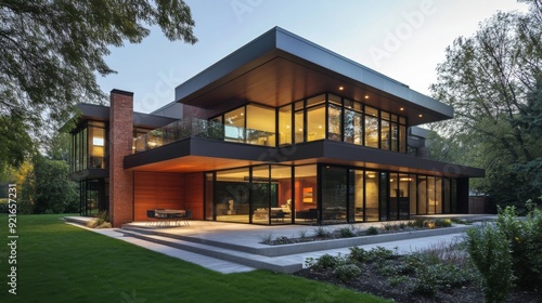house, home, modern, architecture, exterior, building, design, residential, luxury, contemporary, window, garden, landscaping, property, real estate, evening, twilight, sky, tree, grass, lawn, door, patio, porch, facades, villa
