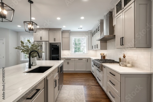 minimalist, grey, airy, hardware, kitchen, stylish, new, dining, wood, lighting, simple, luxury, home, apartment, modernism, black, bright, property, contemporary, light, house, floor, neutral, island, fresh, countertop, cabinet, open, interior, marble, beautiful, granite, design, decor, elegant, sink, space, modern, clean