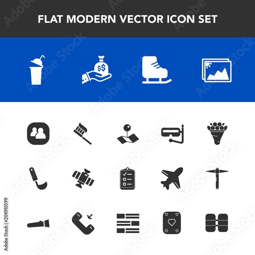 Modern, simple vector icon set with water, station, space, social, planet, flower, beverage, people, kitchen, location, ice, mark, checklist, cooking, list, team, technology, floral, picture icons