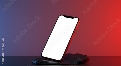 smartphone, mobile phone, mobile phone, device, technology, screen, blank screen, studio shot, modern, communication, contraption, electronic, black, edge, sleek, minimalist, floating, stone, platform, blue, red, lighting, gradient, product, phone, mobile, display, business, blank, design, render, isolated, white, object, closeup, phone