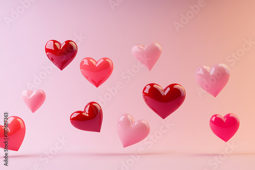 Modern Valentine's Day design featuring a gradient blend of vibrant pink and scarlet with minimalist floating heart icons, creating a chic romantic atmosphere