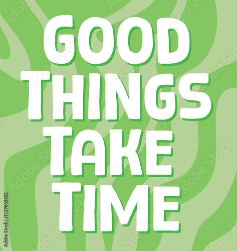 Motivational Good Things Take Time Quote on Wavy Green Background