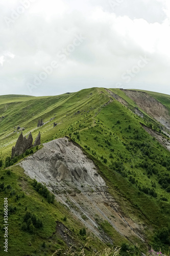 mountain green landscape of mountain slopes on a cloudy summer day