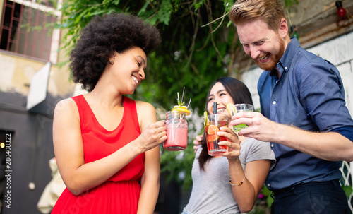 Multiracial group of friends having fun and talking