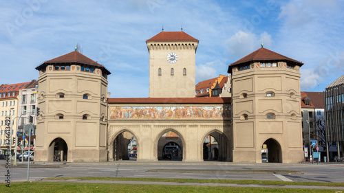 munich, historic, city, gate, clock-tower, museum, bavarian, gothic, front, capital, street, fortification, tower, architecture, arch, front view, daylight, sunny, blue skies, german, german, bavaria, historical, destination, travel, historical building, barbican, tower, building, old, europa, mediaeval, landmark, sky, history, tour tourism, ancient, town, stone