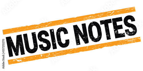 MUSIC NOTES text on black-orange rectangle stamp sign.