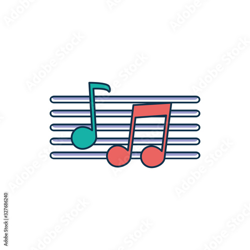 musical notes pentagram melody sound music line and fill style