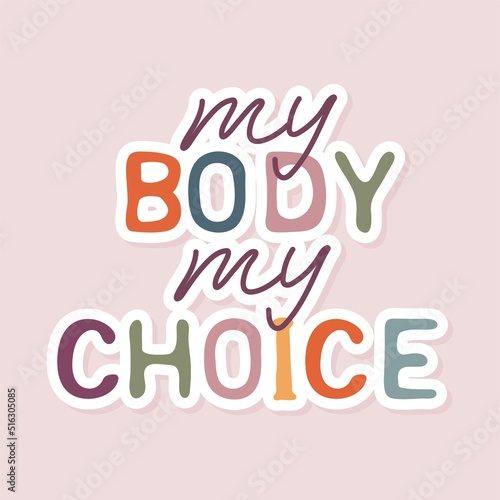My body my choice sticker. Slogan for protest poster after the ban on abortions, Roe v Wade. Feminism Concept Placard. Women's Rights