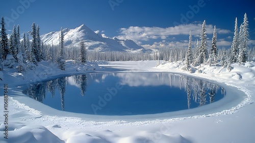 National Minnesota Day at a hockey rink, kids playing ice hockey on frozen lake with snow-covered trees