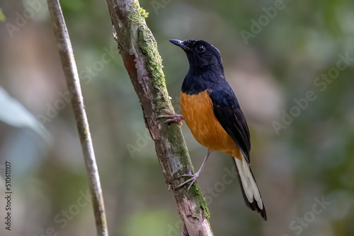 Nature wildlife image of White crown shama on nature rainforest jungle in Borneo Island.