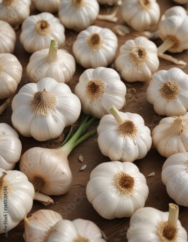 Neatly arranged fresh garlic bulbs, showcasing their aromatic appeal , macro, healthy