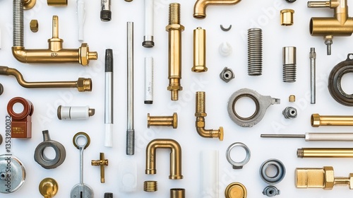 Neatly arranged plumbing components, showcasing precision and organization in design.
