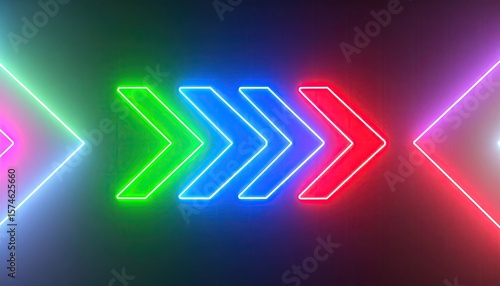 neon, arrow, bright, colours, light, dark, geometric, graphic, design, abstract, shape, digital, futuristic, modern, vibrant, three, direction, movement, technology, glow, colourful, light, energy, style, pattern, dynamic, led