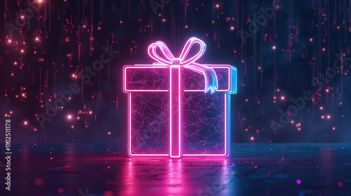 Neon Gift Box with Pink Glow on Dark Background, Cyber Monday, design concept, Generative Ai