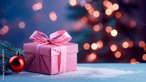 New Year banner with Christmas gift boxes and decorations on background